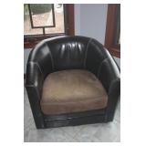 TWO LEATHER BARREL CHAIRS