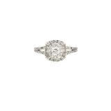 10K WHITE GOLD 1.20CTW DIAMOND HALO ENGAGEMENT RING