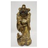 1234 CARVED GILT & PAINTED WOODEN TABLE LAMP, HAS ORIGINAL FINIAL & WOODEN PULLS. 29 3/4 IN H