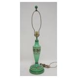 1261 GROUP OF THREE LAMPS; ALABASTER & TWO DECORATED GLASS. TALLEST IS 25 1/4 IN H. CORDS HAVE BEEN