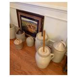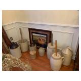 POTTERY JUGS, BUTTER CHURNS