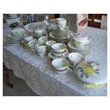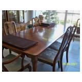 Vintage Harden Furniture Co. China Hutch, Table with 8 Chairs, 2 leaf and Pads.