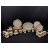 Natuzzi Taupe Leather Modular Sofa With Back Pillows.