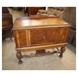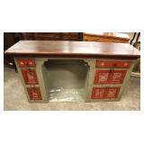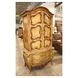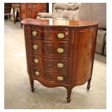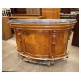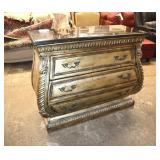 Niermann Weeks quite extravagant nod to Grenneys Italian original bow front gold leaf 2 door 3 drawer commode that retails for $23,390 has paper from catalog approx. 60" w x 21" d x 34" South Jersey