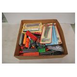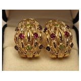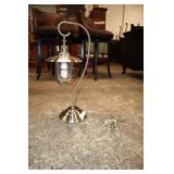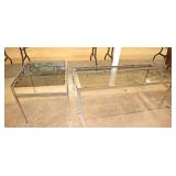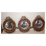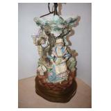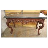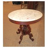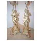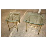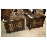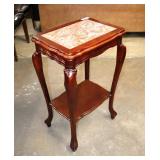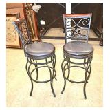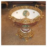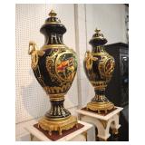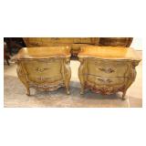Impressive pair of French style marble and bronze decorator pedestals with paint decorated metal columns approx. 16" w x 16" d x 45" h www.SouthJerseyAuction.com