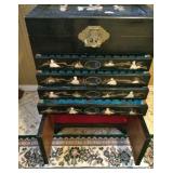 Beautiful Asian Silverware chest with Mother of Pearl and JADE inlay
