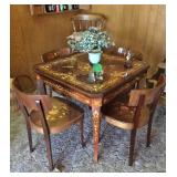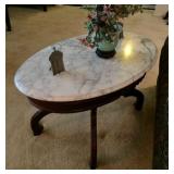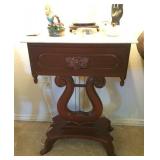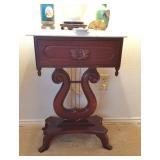 Beautiful Mahogany Lyre Harpstring Tables with Marble tops