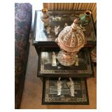 Mahogany "Harp String" Lyre Tables with Marble tops