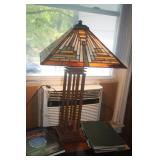 ANTIQUE SLAG GLASS TABLE LAMP
