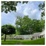 Complete with tan cushions and throw pillows, very good condition but missing bolts, some assembly r
