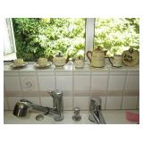 Old brass tea pots--etc