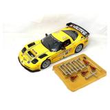 50 Years Of Corvette Display Shelf With Model Cars By The Danbury Mint. Please Note Models Go From 1953 To 2003 With A 1983 Model Car Missing.