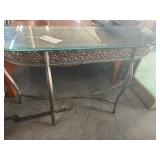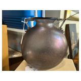 glass and iron pedestal vase
