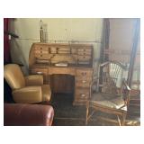 country raw wood roll top desk