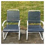 STRAPPED PATIO ROCKER | Outdoor rocking chair with white frame and navy straps - l. 23 x w. 34 x h.