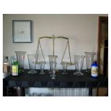 Ice bucket--Empty Collectible Liquor bottles--Washington Pharmacy beer glasses--wine glasses