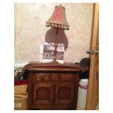 Narrow nightstand and small lamp
