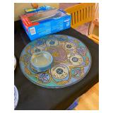Dansk 1960 Denmark serving snack tray set teak & glass