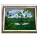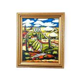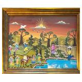 Figural Landscape Oil Painting by Cebu Artist Jun Trinidad "Planting Rice"