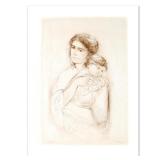 Louis Icart Signed "Lady with Peacock" Etching & Drypoint
