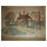 Claw foot dining table with 6 cane bottom chairs and 3 leaf