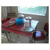 VINTAGE TABLE/2 RED VINYL CHAIRS