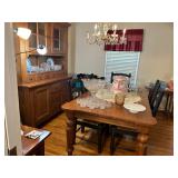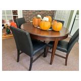 BROYHILL 'ATTIC HEIRLOOMS' RUSTIC DINING TABLE WITH TWO EXTRA LEAFS AND SIX CHAIRS