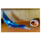 (2) Leather Blue Recliner Chairs - Blue Area Rug 7'8 x 7'8