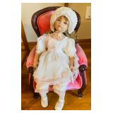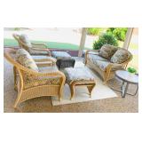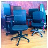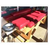 (2) Burgundy Leather Rocker Chairs w/Footstools