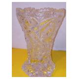 Vintage Art Glass Hand Blown Clear Glass Basket Vase Open Handle