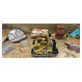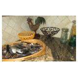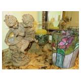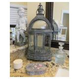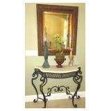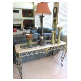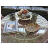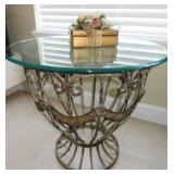 Round Glass Top Ornate Iron Base Coffee & Matching End Table