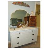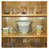 Vintage Thomasville Furniture Dinning Room Table w/6 Chairs, Glass Top & Matching China Hutch