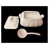 Vtg Japan White Soup Tureen w/ Fruit Bowl 7"x5.5"