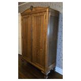 Early 20th-Century Oak Wardrobe on Casters