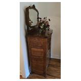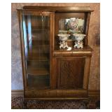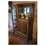 Antique Oak Curio/Cabinet with Curved Glass and Beveled Mirror
