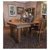 Antique 5-leg Oak Dining Table with 2-ext and Chairs