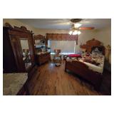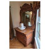 Antique Ornate Oak Dresser and Mirror