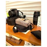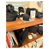 Dyson upright vacuum and Dyon Handheld vacuum with accessories.