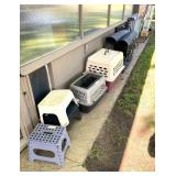 Three large folding kennels with rubber floor mats.