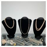 MIXED GOLD TONE COSTUME JEWELRY | Mixed lot of gold & silver tone costume jewelry necklaces Dimensio