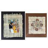 (2pc) Handmade Vintage Quilts | One Classic Dresden Plate quilt block pattern on a cream colored bac