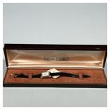 Men’s Belair Quartz Watch | Having muted gold strap and dark blue face. Comes in original box. Dimen
