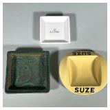(4pc) CRYSTAL & CERAMIC DISHES | Three crystal serving pieces, oblong, small round and triangular. O