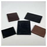 (5pc) Leather Wallets | Including a dark blue leather wallet with gold clasp change purse and fleur-