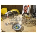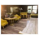 Canary Yellow and White MCM Modern Table with 4 armchairs