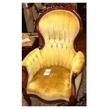 Vintage Victorian Parlor Chair with Carved Wood Frame 39.5"x25.5"x18"