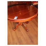 Vintage Dark Wood Round Carved Side Table with 3 Prong Stand 27.5"x21.5"x21.5"