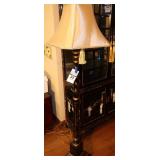 Vintage Chinese Black Lacquered Floor Lamp with Butterfly Motif with Shade 66"x17"