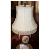 Tall Milk Glass Style Table Lamp with shade with fringe 27"x12"