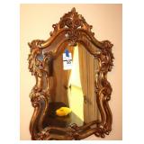 Baroque Styled Ornate Italian Styled Wall Mirror with Gold Tone 25"x12"